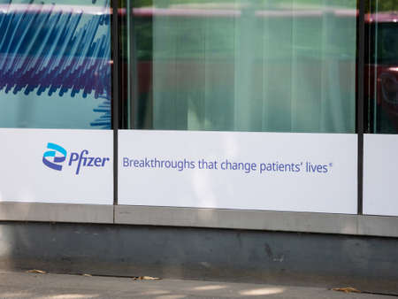 Advertisement of Pharmaceutical Corporation Pfizer At The German Headquarters In Berlin