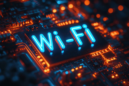Illuminated wifi icon on a circuit board a captivating fusion of technology and design