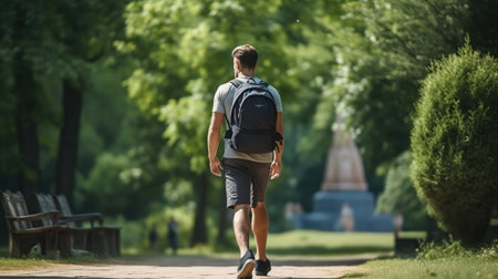 This captivating image showcases an adventurous journey as a hiking and traveling enthusiast explores a scenic trail. The composition captures the spirit of wanderlust and discovery, as the guy immerses himself in the beauty of nature. With a backpack on his back, he embarks on a trail that promises exciting experiences and breathtaking vistas. The image reflects the joy of outdoor exploration, showcasing the harmony between the traveler and the natural environment. Join this intrepid adventurer on his quest for new horizons and unforgettable moments