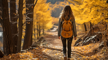 A woman strolling through a picturesque fall woodland