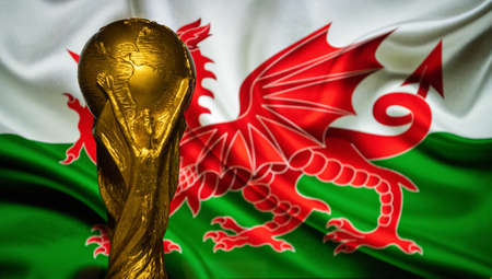 October 6, 2021, Cardiff, Wales. FIFA World Cup against the background of the flag of Wales.
