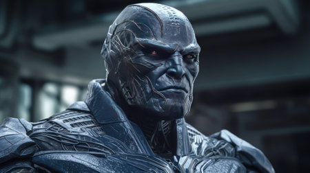 Cyborg elderly man. AI generated