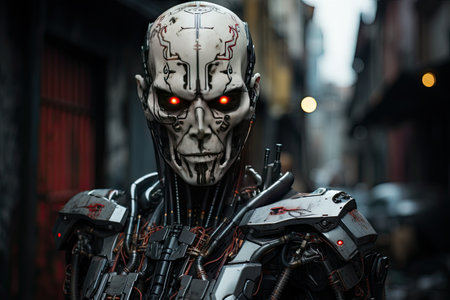Cybernetic humanoid in a dark alley.Generated with AI