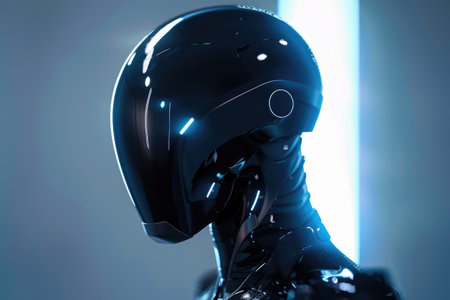 Futuristic Cyber Robot with Human Face Mask. AI generative