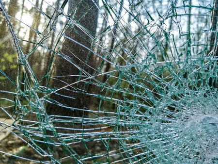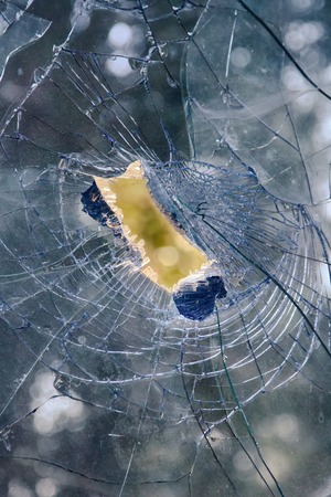 crack in glass, with reflection of the outside world visible through the glass, created with generative ai