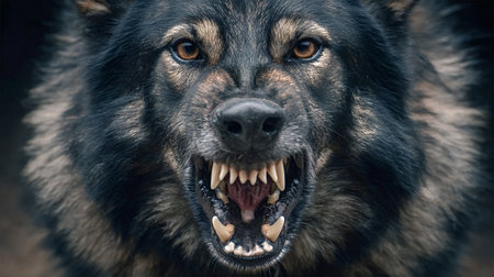 Fierce dog showing its teeth while barking at an intruder, warning to stay away