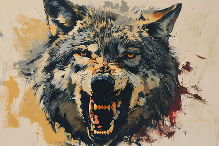 A captivating image of a ferocious wolf snarling, showcasing its powerful presence and the intensity of the wild. The photograph captures the raw emotion and spirit of this incredible animal in its natural habitat.