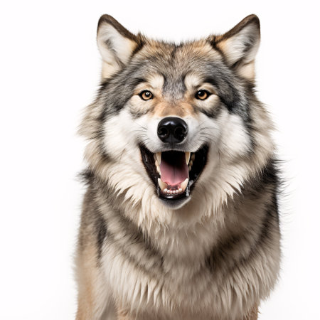 Digital image of wolf yawning and teeth in view, high quality, high resolution