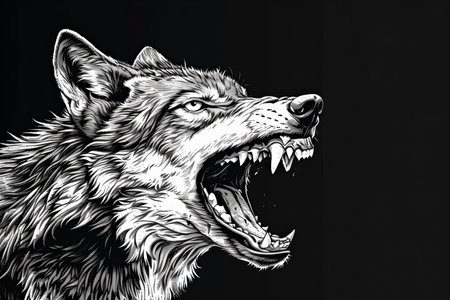Featuring a the head of a wolf, with his teeth open, high quality, high resolution