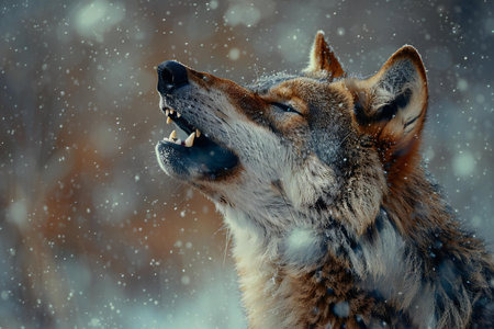Close up portrait of a wild dog howling in the wilderness, natural animal behavior in the wild