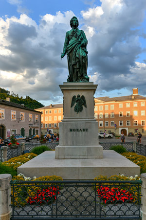 Mozart statue located on Mozart Square (Mozartplatz) in Salzburg, Austria