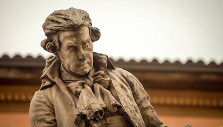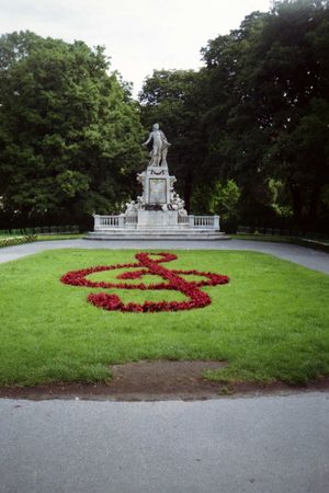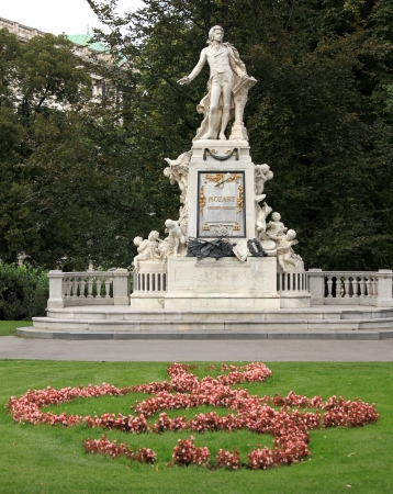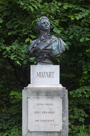 Fragment of Wolfgang Amadeus Mozart memorial in Burggarten garden, Vienna, Austria. Monument was created by sculptor Viktor Tilgner in 1896 and now is in public domain.