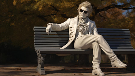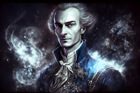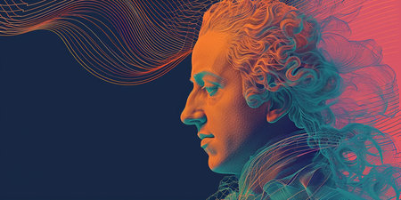 3D Illustration of Wolfgang Amadeus Mozart Surrounded by Colorful Waves