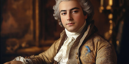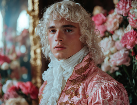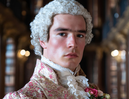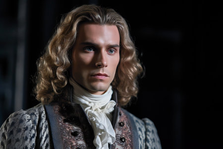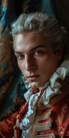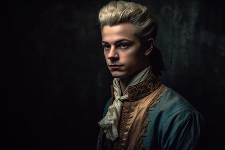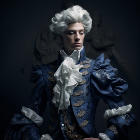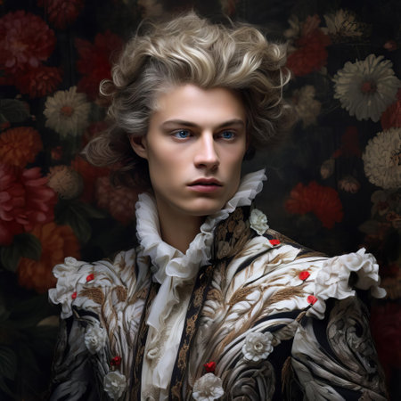 the gentleman, adorned in lavish attire, exudes elegance and sophistication, embodying the opulence of the baroque era, with intricate patterns, rich fabrics, and ornate accessories, showcasing the grandeur and majesty of 17th-century european aristocracy in a stunning portrait. ai generated