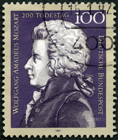 GERMANY - CIRCA 1991: a stamp printed in the Germany shows Wolfgang Amadeus Mozart, Composer, circa 1991