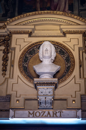 VIENNA, AUSTRIA - OCT 4, 2017: Wolfgang Amadeus Mozart, an influential composer of the Classical era, Madame Tussauds wax museum in Vienna.