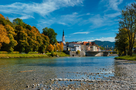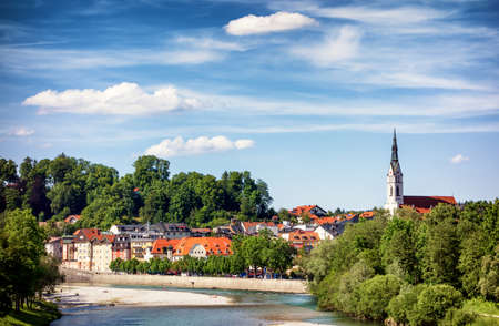 Bad Tolz - picturesque resort town in Bavaria, Germany in autumn and Isar river