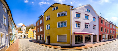 Landsberg am Lech, Germany - April 4: famous old town with historic houses of Landsberg am Lech on April 4, 2020