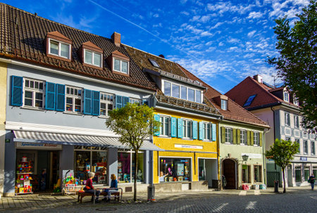 Memmingen, Bavaria, Germany - July 1, 2017 Colorful houses on the streets of old town Memmingen