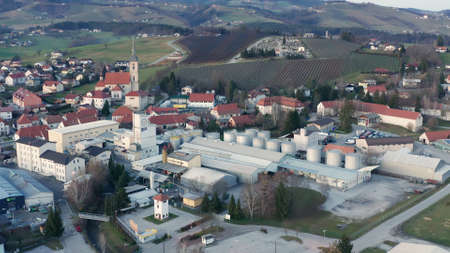 Slovenska Bistrica, Slovenia - Dec 25 2019: Aerial view of Gea Oil Mill in Slovenska Bistrica, Slovenia