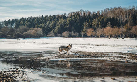 Czechoslovakian wolfdog in beautiful winter nature. wolfhound.