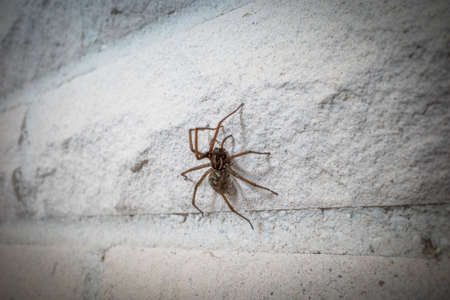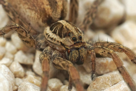 Closeup on one of Europes largest wofl spiders, Hogna radiata in Gard, France