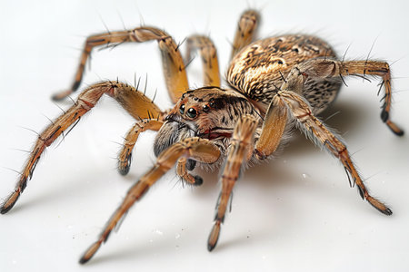 A close-up of a spider legs on a smooth surface, with a clean background for text placement.
