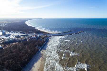 Seashore in a small resort town of Kolobrzeg in Poland, view from above