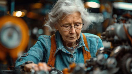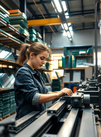 an image of a woman working on a machine in a factory, woman working on a machine in a factory