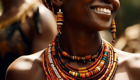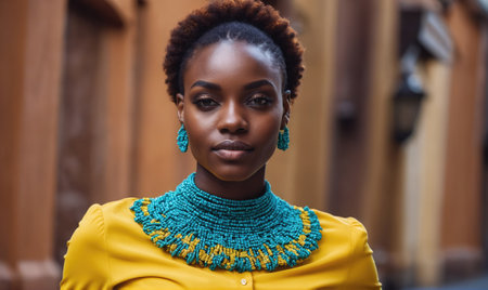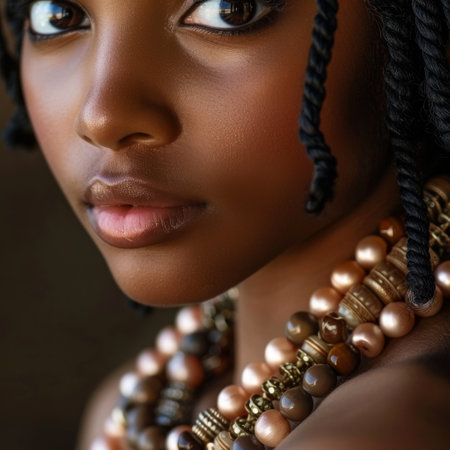 Elegant African Woman with Traditional Braids and Beaded Necklaces