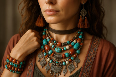 Bohemian Style Fashion Detail with Colorful Textures and Accessories