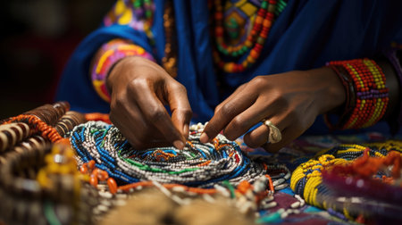 African bead maker closeup handwork soft studio light cultural craft detail calm focus