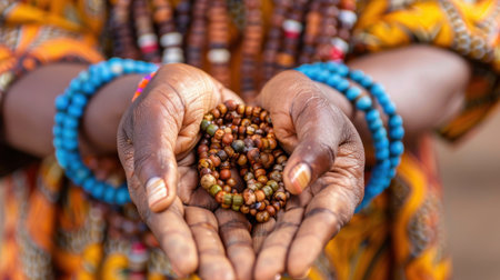 Close-up of hands displaying an assortment of colorful beaded jewelry, showcasing vibrant colors and traditional craftsmanship, reflecting rich cultural heritage.