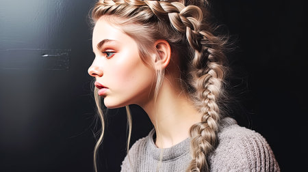 Close up of a braided portrait of a young woman