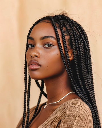 Portrait of a young african american woman with braids