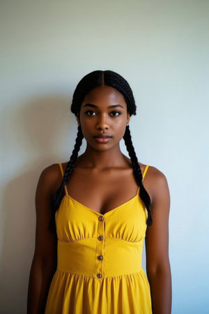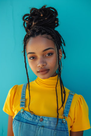 Confident young black woman with Afro braids wearing yellow shirt