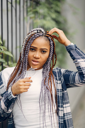 Urban young woman with african braids. Fashion of youth