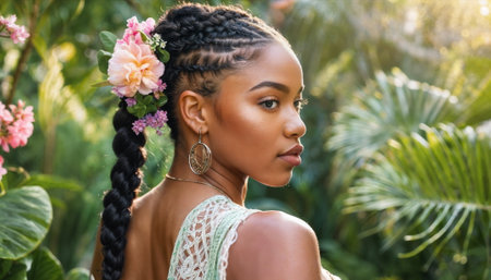 A Portrait of Strength and Grace, Braided Hair Flowing in the Light.