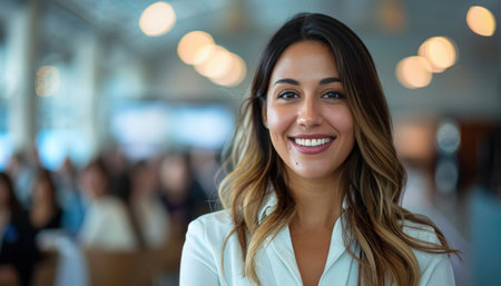 Cheerful Young Professional in an Office Environment Smiling Brightly While Engaging with Clients