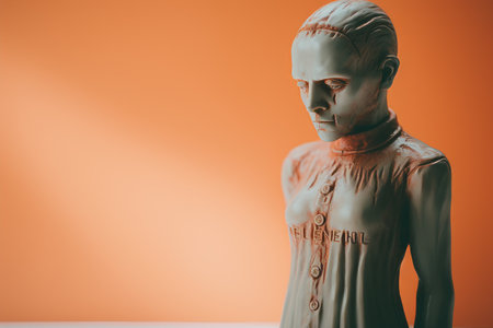 A beautifully crafted sculpture features a calm face highlighted by soft sunlight creating an atmosphere of tranquility in a minimalist setting.