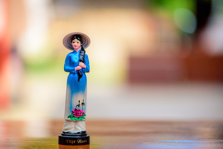 Cute girl figurine thinking with a country dress and yellow scarf on her head