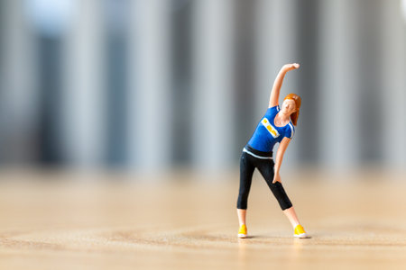 A tiny figurine of a woman in athletic wear performing a side stretch