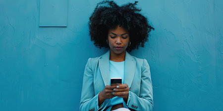 black woman, hands and phone with in studio for social media, check followers or texting, created with generative ai