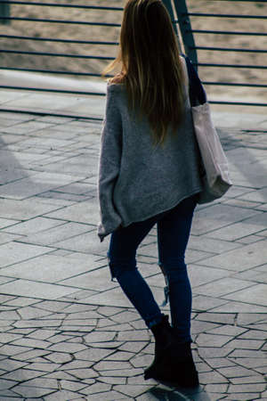Paphos Cyprus March 06, 2020 View of unidentified tourist walking in the streets of Paphos in the afternoon