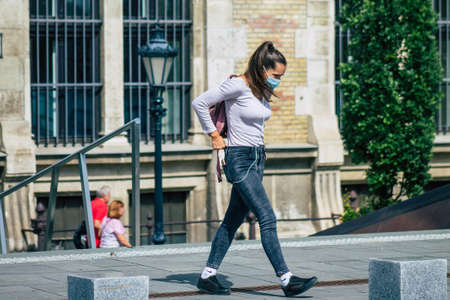 Budapest Hungary july 16, 2020 View of unidentified pedestrians walking in the historical streets of Budapest, the capital and the most populous city of Hungary