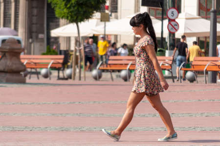 TIMISOARA, ROMANIA - SEPTEMBER 15, 2016: Woman walking on the street. Real people.
