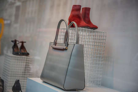 Women shoes and handbags in a fashion boutique