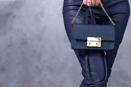 Bags fashion trends. Close up of gorgeous stylish bag. Fashionable woman is holding a trendy bag. Stylish trendy accessories concept
