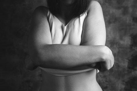 Close up of Asian woman model touch body skin