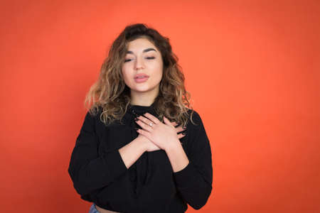 Beautiful woman Holds his hands in front of him looking forward fashionable